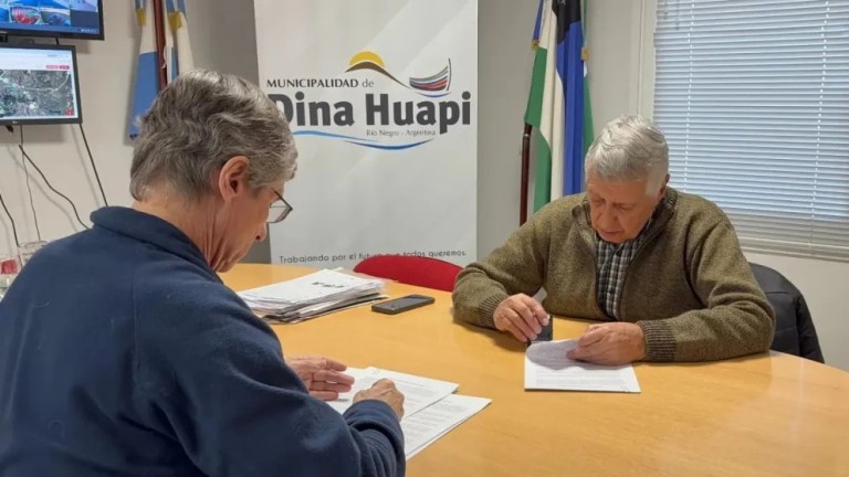 El programa de compensación de deudas de Río Negro, trajo al ministro de Gobierno, Trabajo y Turismo, Fabián Gatti, a Dina Huapi. Es que allí firmó con su intendente, Hugo Cobarrubia, un convenio mediante el cual la Provincia reconoce obligaciones pendientes en concepto de tasas municipales.