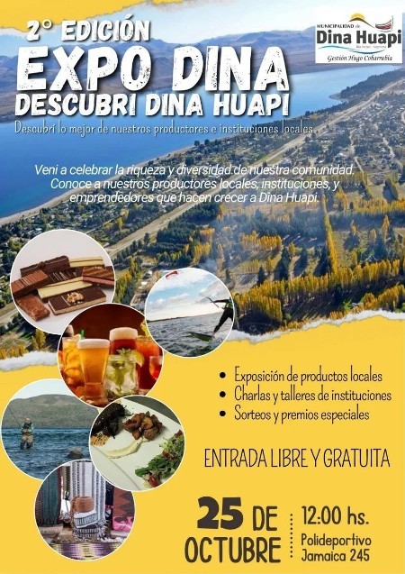 La Secretaría de Turismo, Cultura y Deportes de Dina Huapi invita a toda la comunidad a ser parte de la EXPO DINA – Descubrí Dina Huapi, 2° Edición, un espacio creado para dar visibilidad al trabajo de productores, emprendedores, instituciones, artistas y deportistas locales, fortaleciendo los lazos comunitarios y celebrando la identidad local.